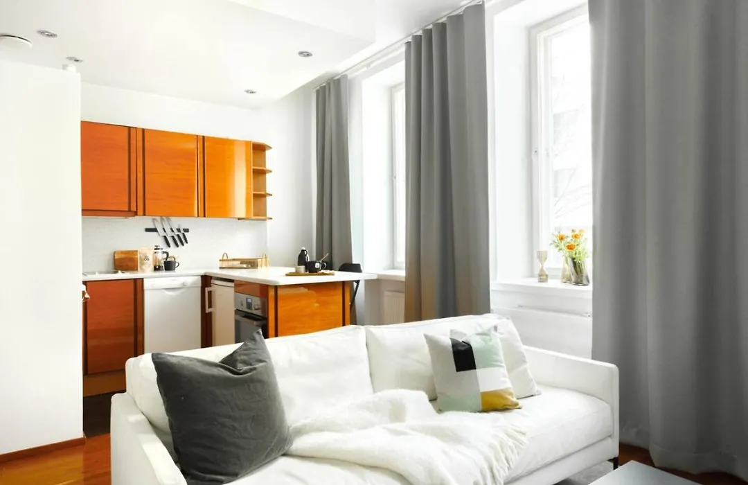Questo alloggio dispone di una cucina completamente attrezzata completa di un forno per la vostra comodità. L'appartamento è a 150 metri dalla stazione della metropolitana Kamppi e abbastanza vicino alla fermata del bus Fredrikinkatu.